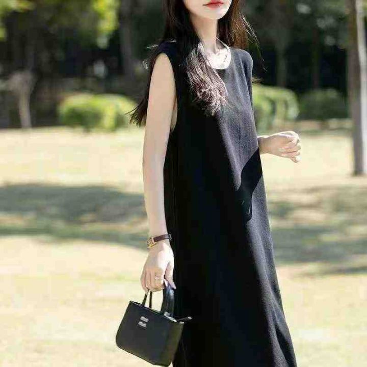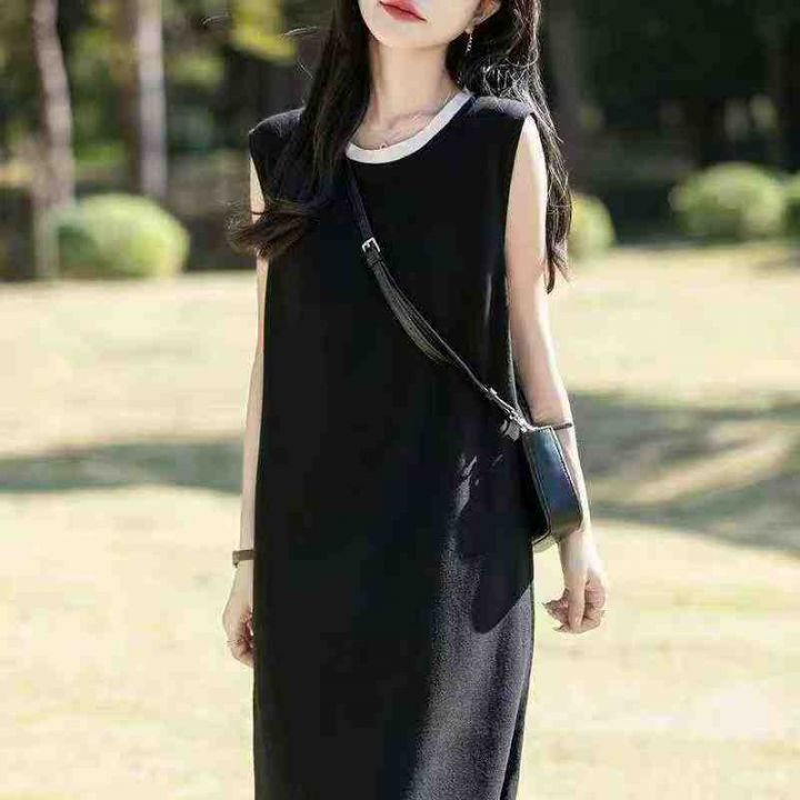 夏季新款净版简约宽松冰丝针织毛衣背心连衣裙,独立包...
