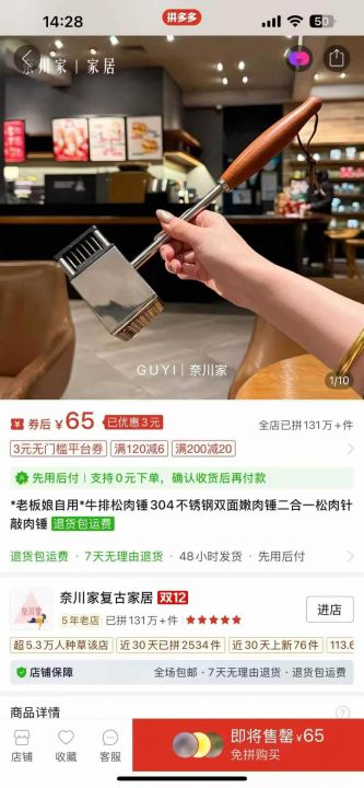 牛排松肉锤304不锈钢双面嫩肉锤二合一松肉针敲肉锤入...
