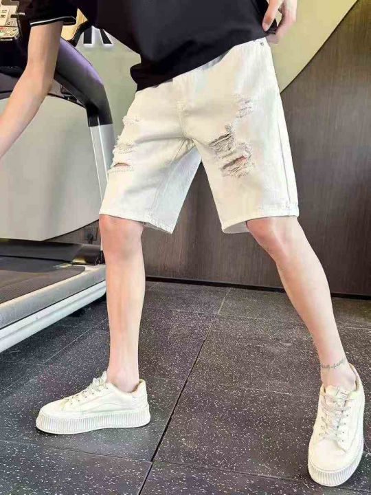 夏季新款男士洗水棉美式复古破洞牛仔短裤,独立包装,...
