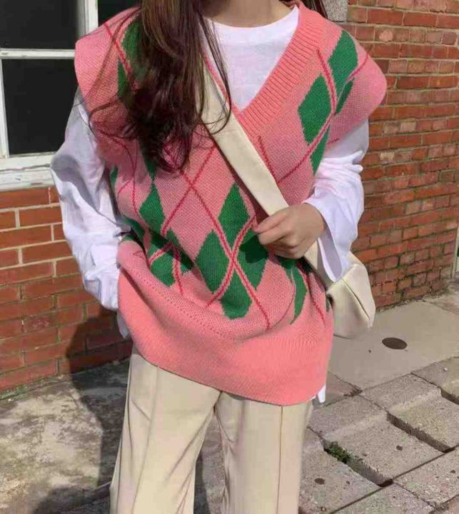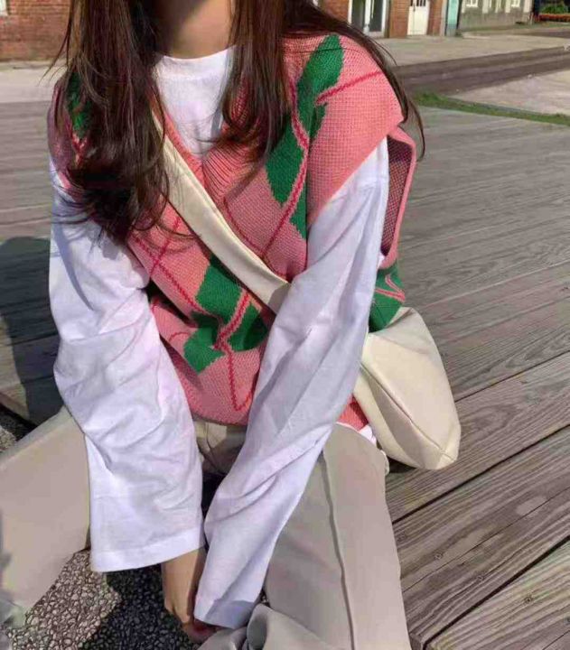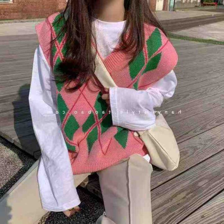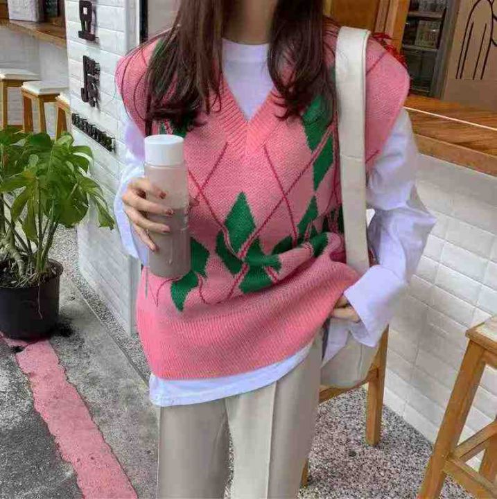 秋冬新款宽松百搭慵懒风提花V领叠穿套头毛衣马甲,独...