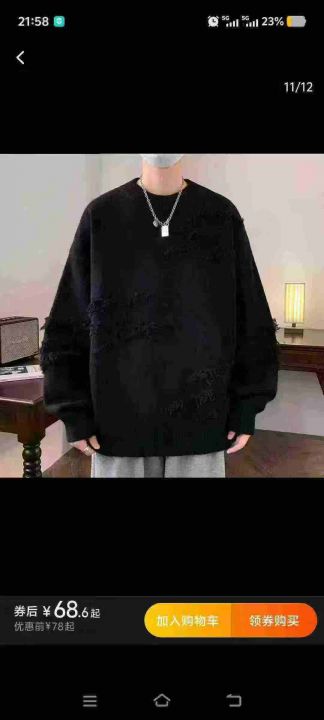 秋冬潮牌男装毛衣,潮流宽松百搭可外穿休闲男士毛衣,...