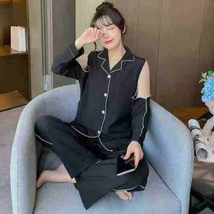 ① 网红爆款冰丝性感长袖长裤睡衣两件套装!整款两色,...