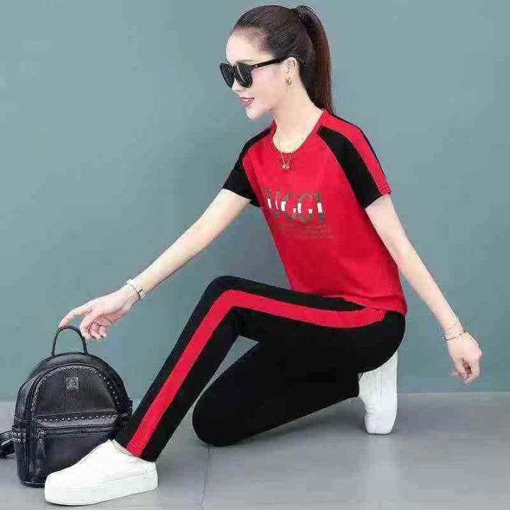 短袖长裤运动套装女夏时尚纯棉宽松跑步服休闲两件套,数量110套,码数ml3xl4xl,独立包装,全清8.8元。 货号:1323