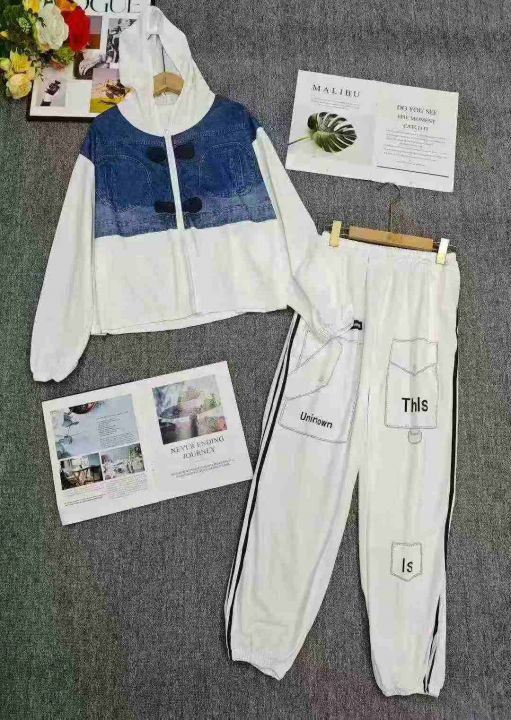 电商仓回收230套时尚设计感仿牛仔休闲连帽卫衣卫裤套装,码数2-4-6,相当于M-XL-3XL。款式新颖,版型质量都不错,款号3470。有独立包装,分货➕1。