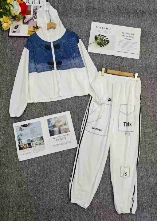 电商仓回收230套时尚设计感仿牛仔休闲连帽卫衣卫裤套装,码数2-4-6,相当于M-XL-3XL。款式新颖,版型质量都不错,款号3470。有独立包装,分货➕1。。 货号:24862