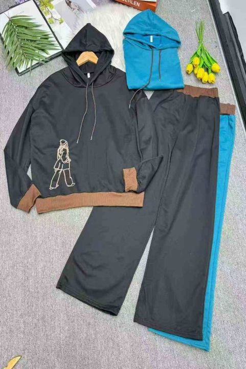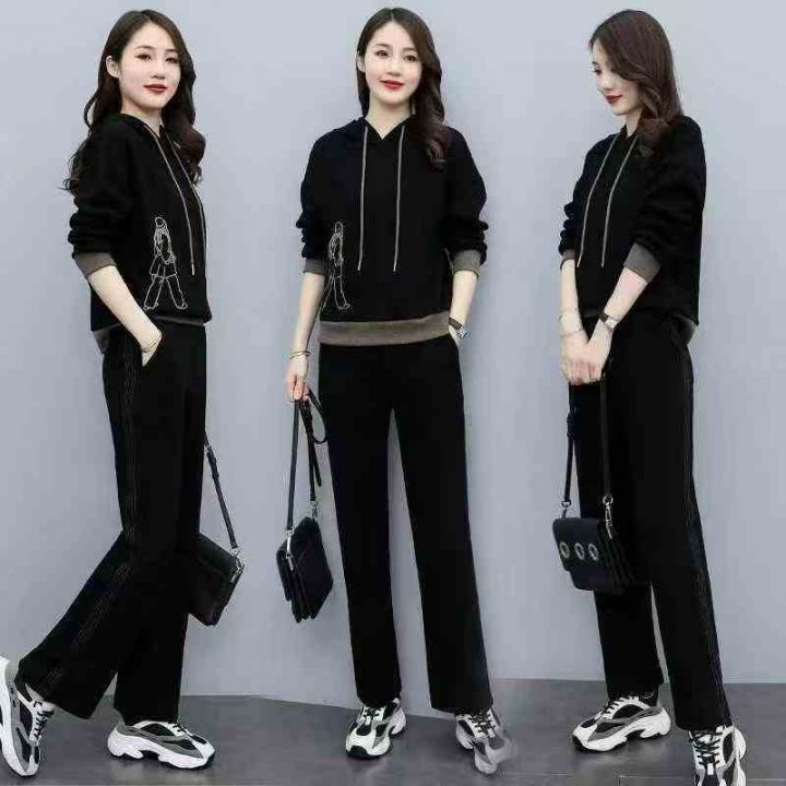 休闲运动服套装女韩版减龄时尚宽松卫衣两件套,独立包装,大货黑色为主,数量336套,码数1-4码,货号1115#30