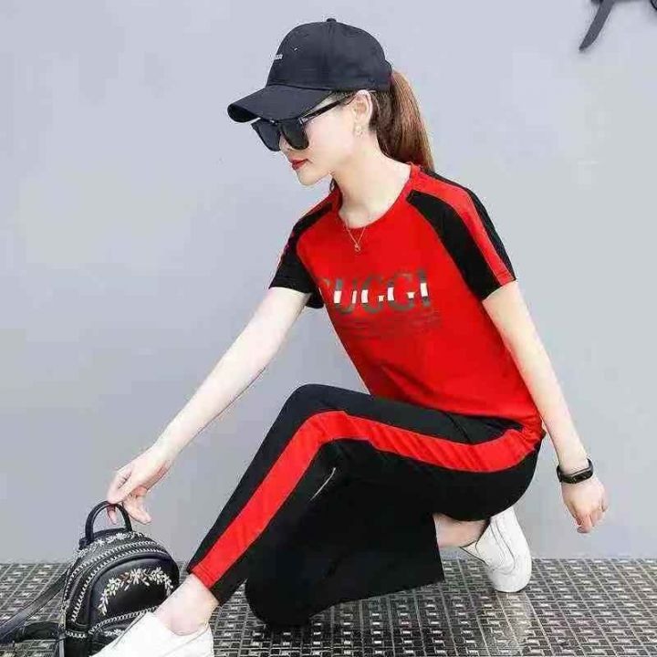 短袖长裤运动套装女夏时尚纯棉宽松跑步服休闲两件套,数量110套,码数ml3xl4xl,独立包装,全清8.8元