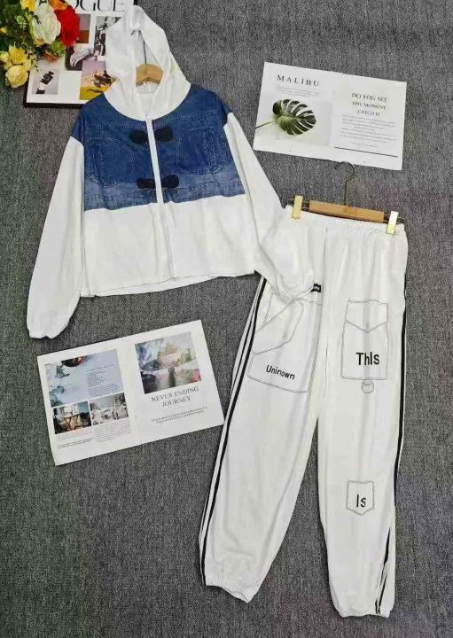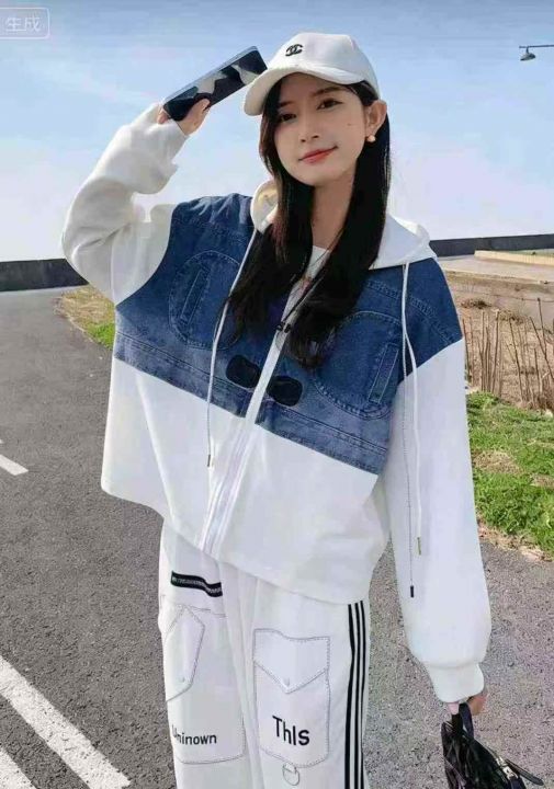电商仓回收230套时尚设计感仿牛仔休闲连帽卫衣卫裤套装,码数2-4-6,相当于M-XL-3XL。款式新颖,版型质量都不错,款号3470。有独立包装,分货➕1。