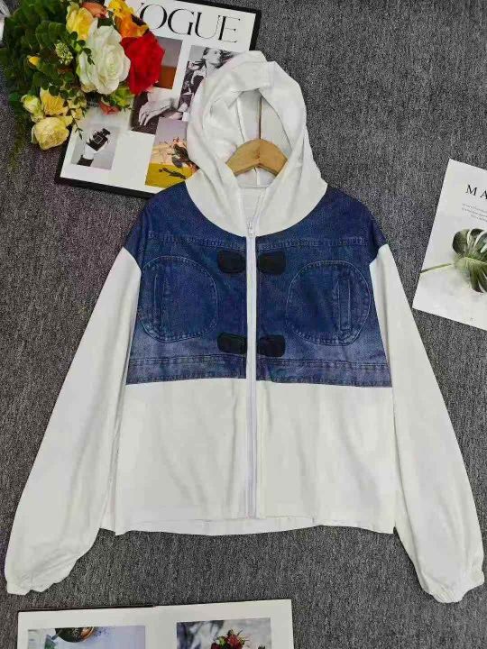 12.8清电商仓回收230套时尚设计感仿牛仔休闲连帽卫衣...