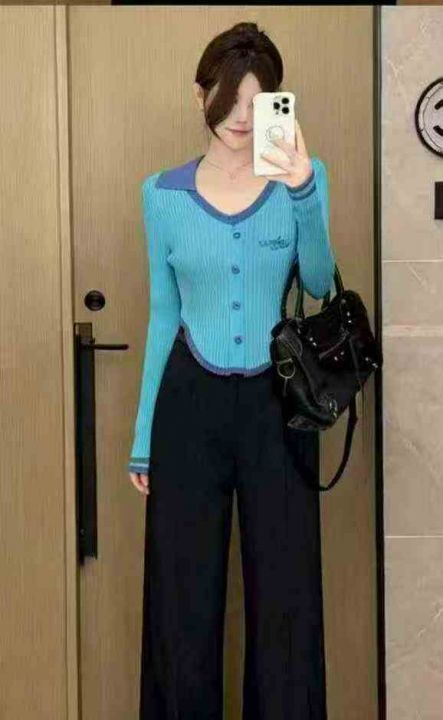 春秋新款辣妹性感纯欲风刺绣单排扣针织PoLo领套头毛衣,独立包装,均码面料...