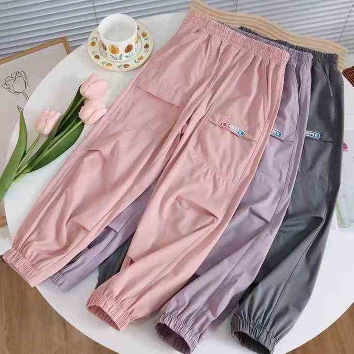 180件左右新款男女中大童春秋季薄款速干工装裤,整款4个色,码数120-170,独立包装。 货号:1323