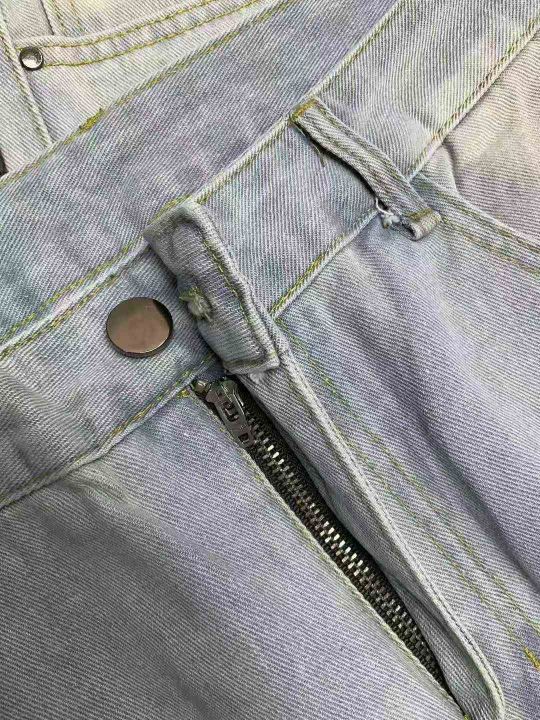 品牌外贸原单宽松百搭破洞美式复古牛仔长裤,独立包装...