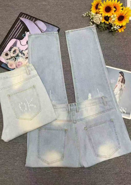 春秋新款复古网红破洞可调节直筒阔腿牛仔裤,独立包装带腰卡,码数S--2XL码...