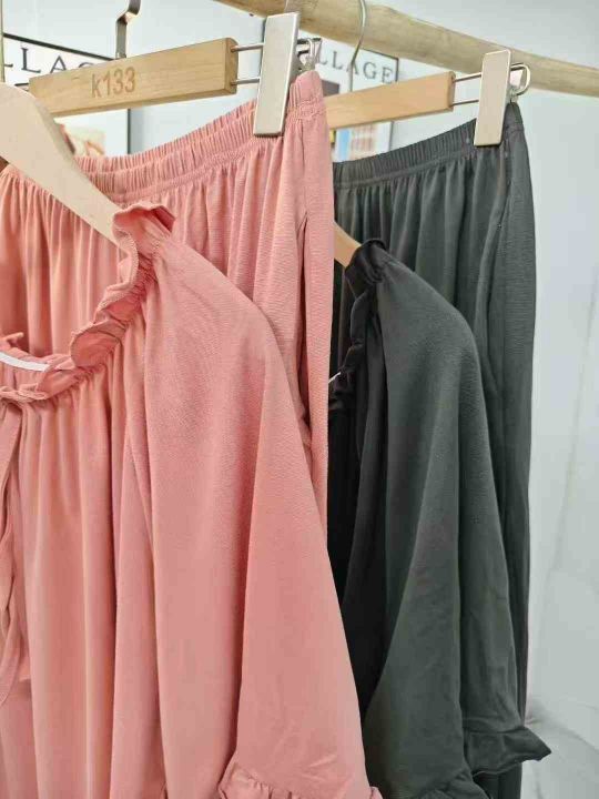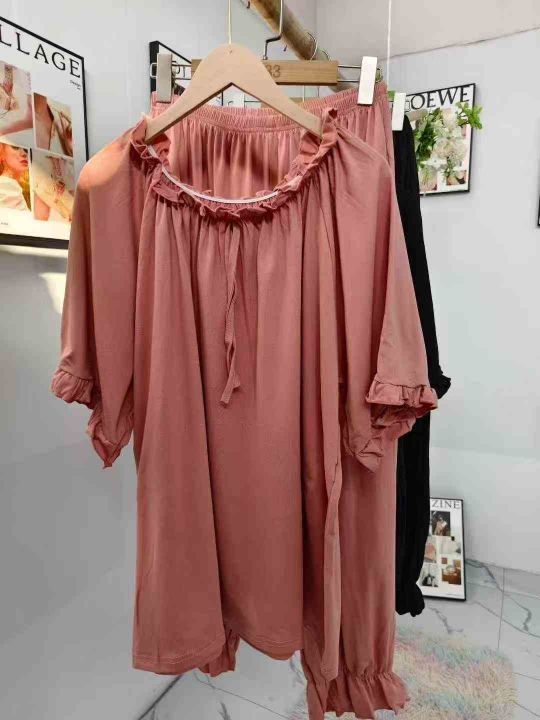 120套加大码木耳边睡衣女春夏短袖长裤套装宽松家居服,红色多,码数2-6,独立包装,全清7.8分货+1。 货号:1323