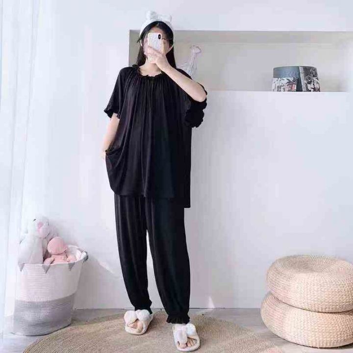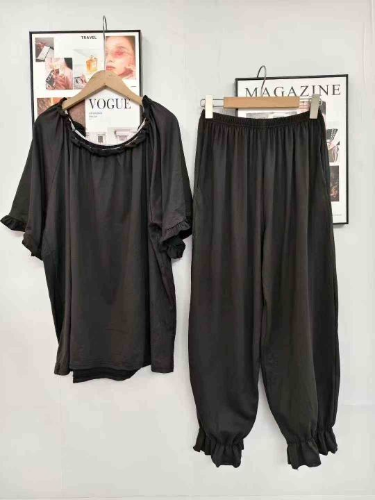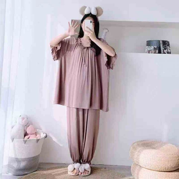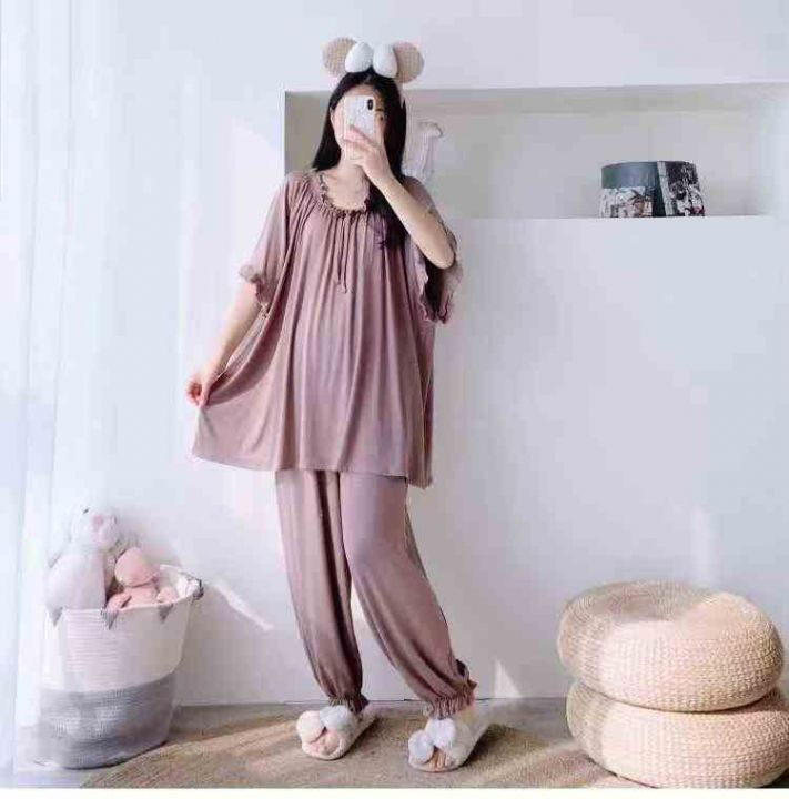 120套加大码木耳边睡衣女春夏短袖长裤套装宽松家居服...