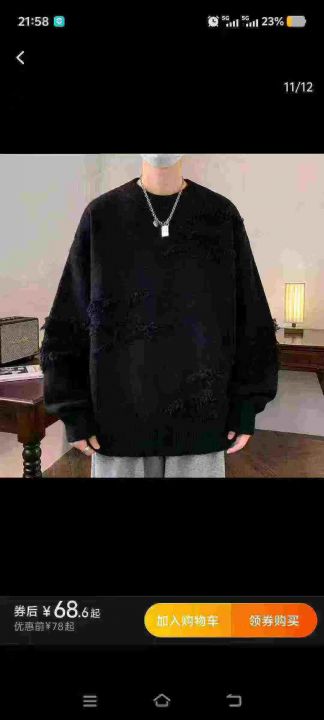 秋冬潮牌男装毛衣,潮流宽松百搭可外穿休闲男士毛衣,...