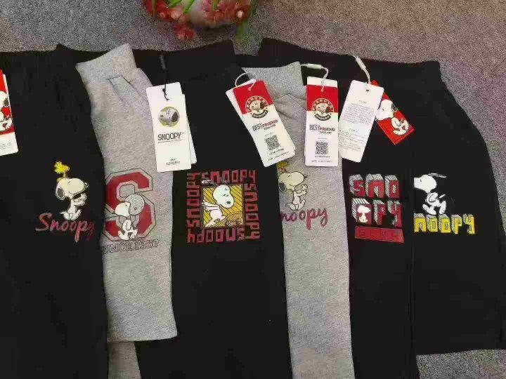 品牌史努比童装夏季新款纯棉松紧短裤,数量1500件左右,尺码110--160,整款两个色,logo很多,独立包装带吊牌,货品整洁质佳。 货号:24862