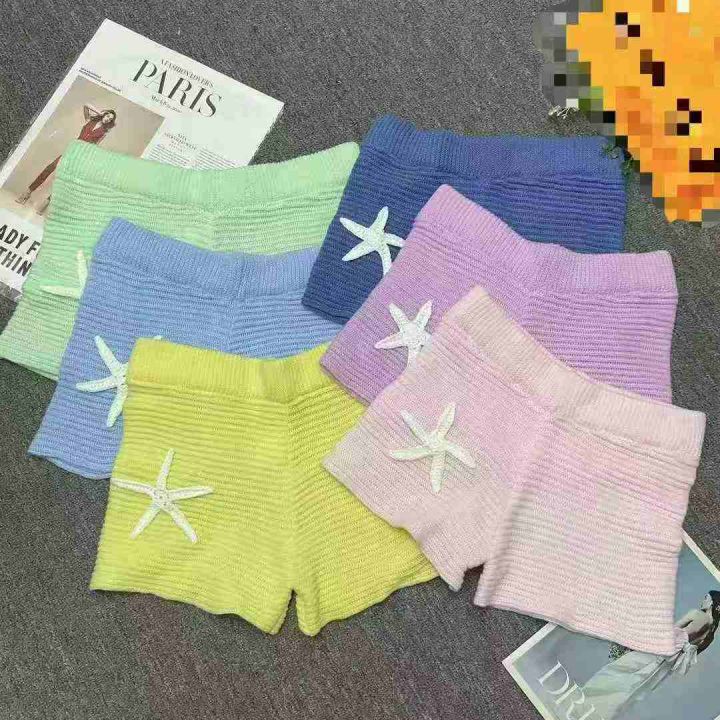 1000件左右美式辣妹撞色星星针织短裤低腰显瘦显臀休闲...