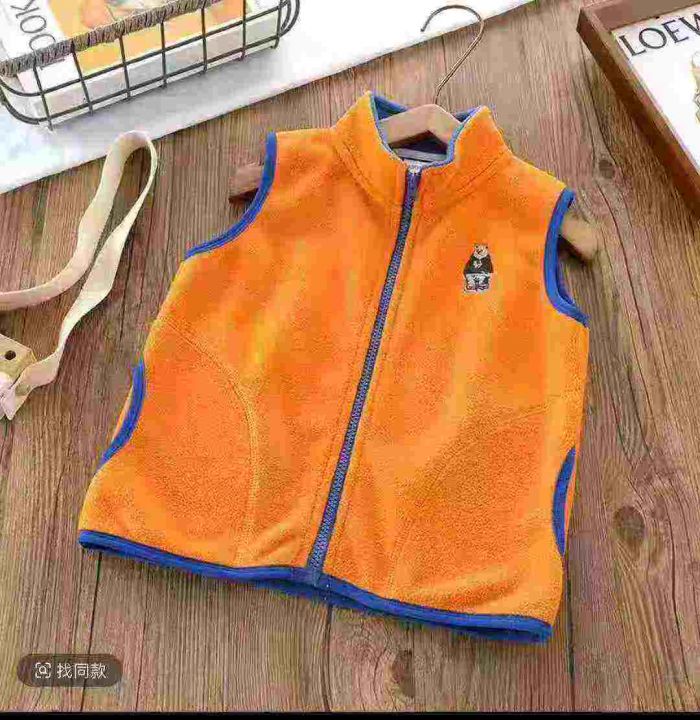 卡通小熊儿童摇粒绒马甲春秋装薄款背心男女宝宝坎肩,独立包装带吊牌,100-...
