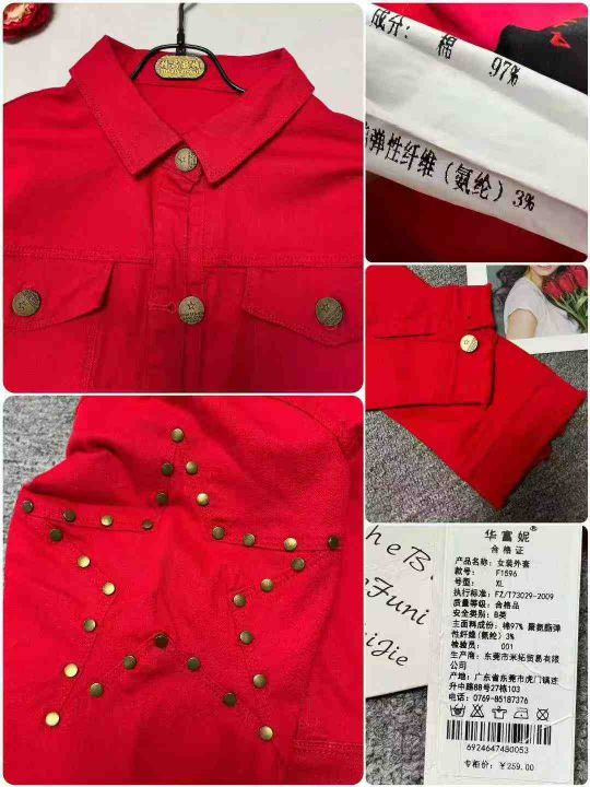 天猫精选新款刺绣复古帅气靓妹装穿搭牛仔外套,二个整款(红色253件、蓝色46件)299件,品质可入实体店,码数S~2XL码,独立包装带吊牌,全清14.8元[烟花][烟花][烟花]