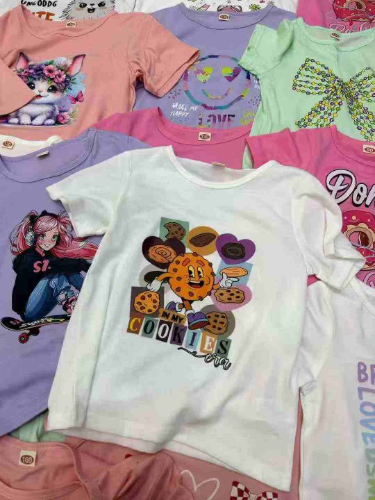 全清2.98元,18800件\'童装短袖T恤,卡通彩色图案童装短袖T恤,花型大同小异一系列\'独立包装,码数90-160,分货200起3.5元