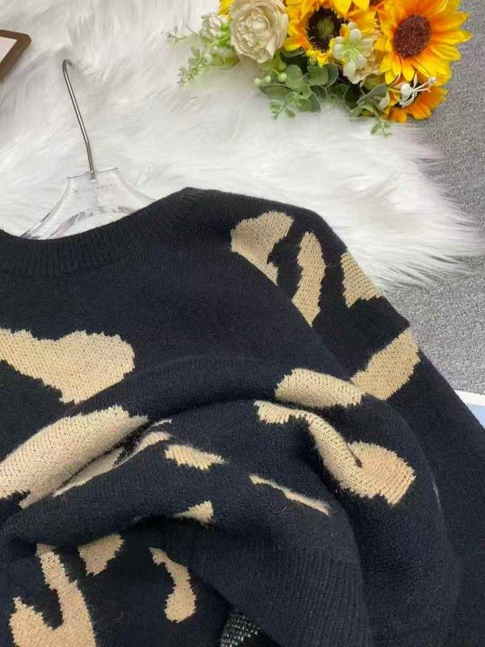秋冬新款复古提花北极绒芝麻底圆领套头毛衣,独立包装...