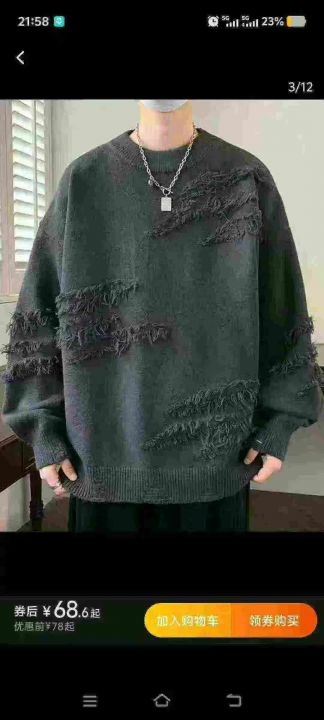 秋冬潮牌男装毛衣,潮流宽松百搭可外穿休闲男士毛衣,...