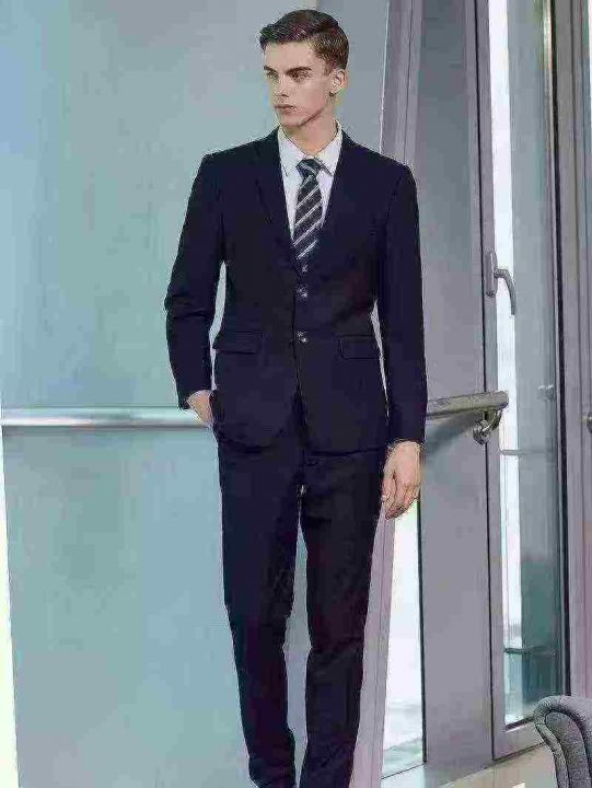 藏青色西装套装800套左右,商务修身正装免烫,两边开...