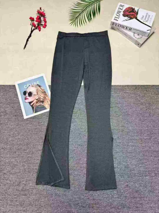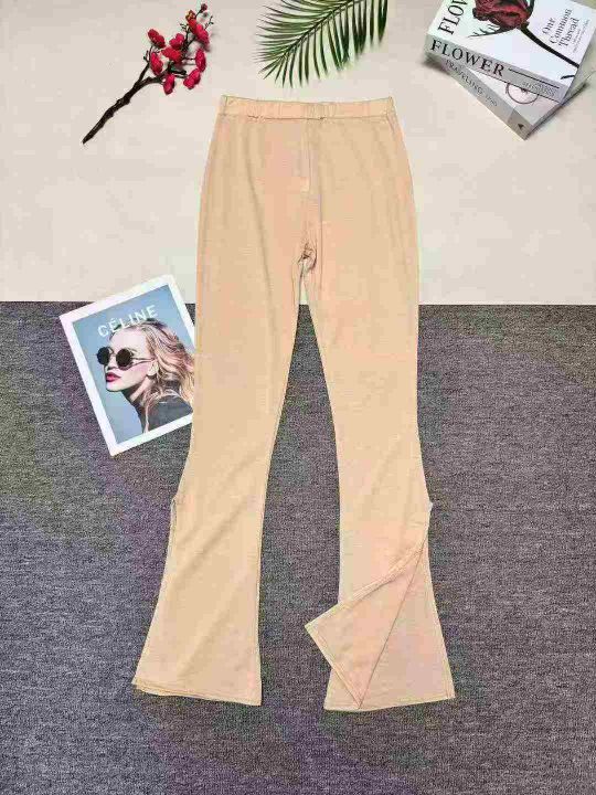 洋气显瘦微喇叭开衩裤子,整款三色,数量:371套,码数:S-2XL,品质好,有独立包装。