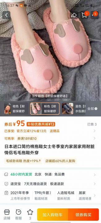 日本进口简约棉拖鞋女士冬季室内家居家用耐脏情侣毛毛拖鞋外穿,1000双
