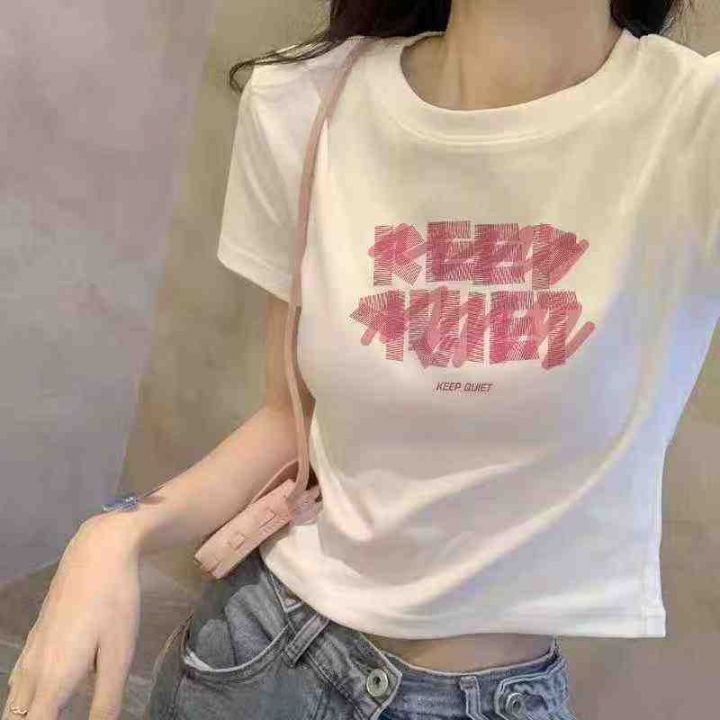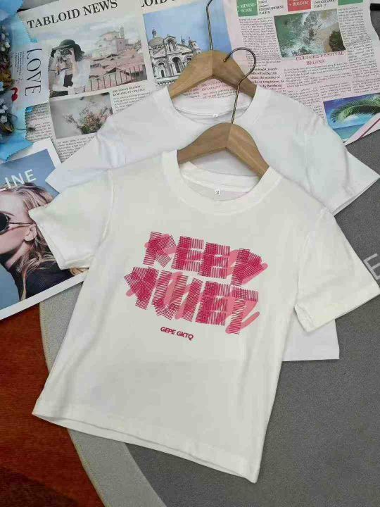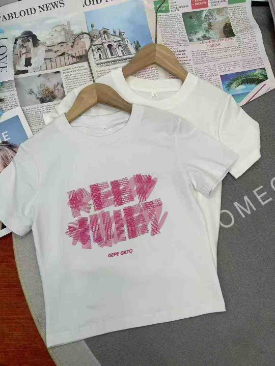 辣妹新款印花短袖短款t恤,整款2色(米白,白色)2码有弹力,独立包装,数量137件,福利价5.8秒杀