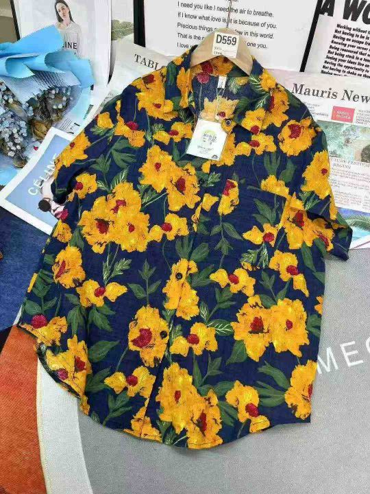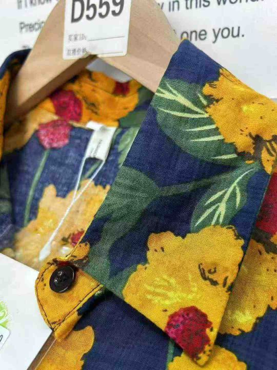 港风复古女士印花宽松显瘦设计感小众中长款短袖衬衫,单款单色,独立包装,数量56件,SML码,福利价8.8秒杀