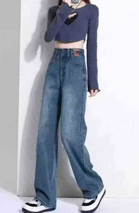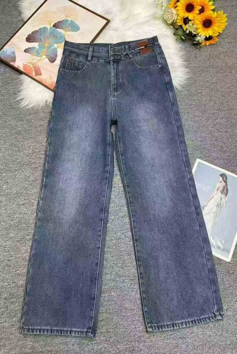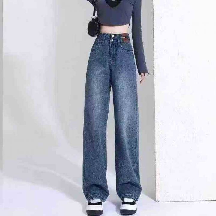 冬季新款复古蓝洗水棉直筒阔腿牛仔长裤,独立包装带吊...