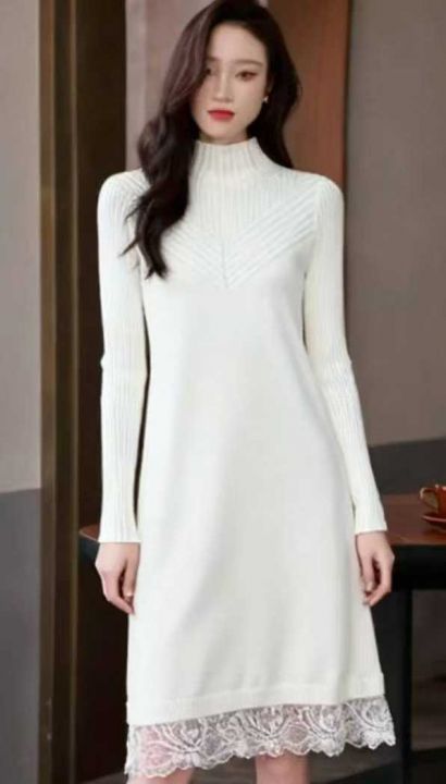 秋冬新款设计款法式复古半高领针织毛衣连衣裙,独立包装,均码面料柔软舒适...