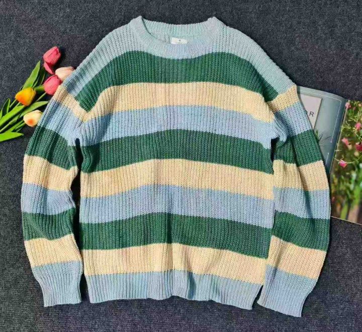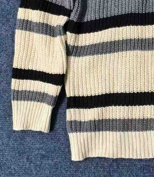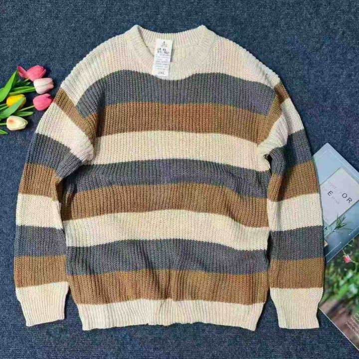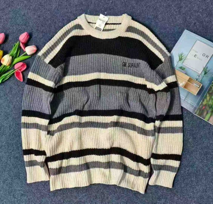 ☆7.8元,秋冬季慵懒风情侣百搭条纹宽松圆领毛衣,男女同款,100件,M-2XL,独立包装吊牌,全清7.8元