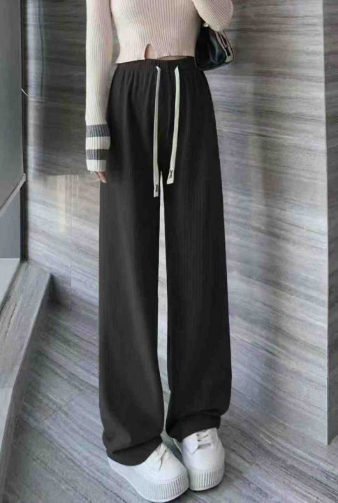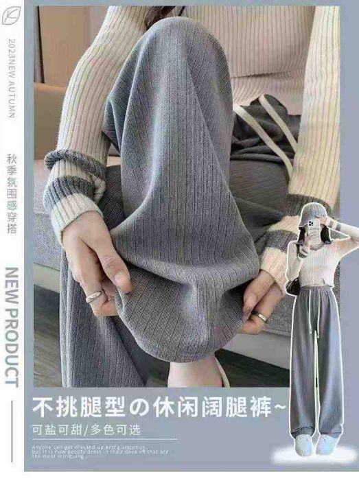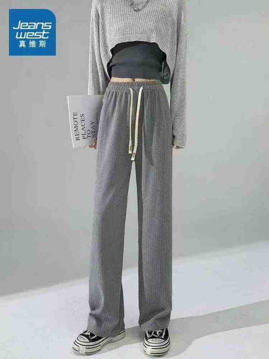 春秋新款条纹直筒阔腿松紧腰休闲长裤,独立包装,码数...