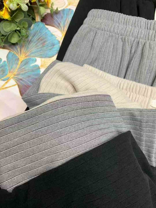 春秋新款条纹直筒阔腿松紧腰休闲长裤,独立包装,码数...