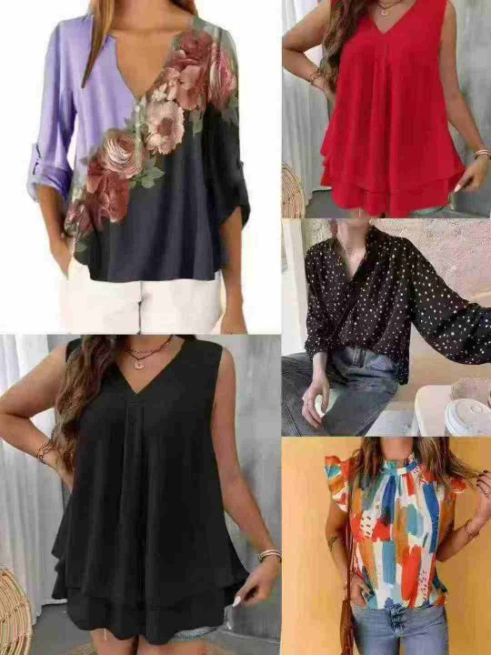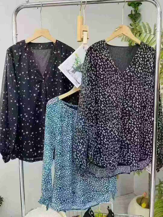 外贸款雪纺上衣,数量:815件,码数:S-M-XL-2XL-3XL-4XL-5XL,有独立包装,2.5元亏本清