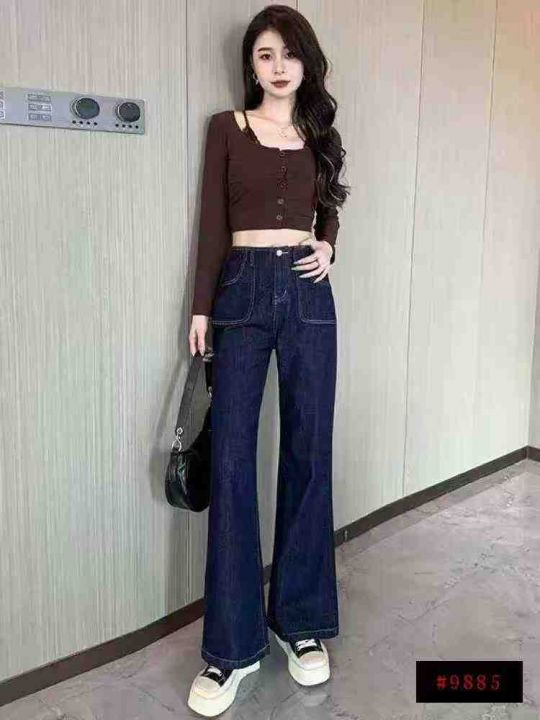 复古蓝微喇牛仔裤288件9.5,春秋高腰显瘦,裤头包边,面料柔软舒适,有口袋...