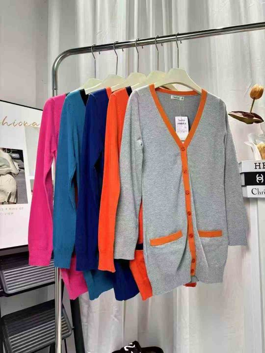 3500件上市公司品牌春季中长款V领针织开衫,尺码:M~...