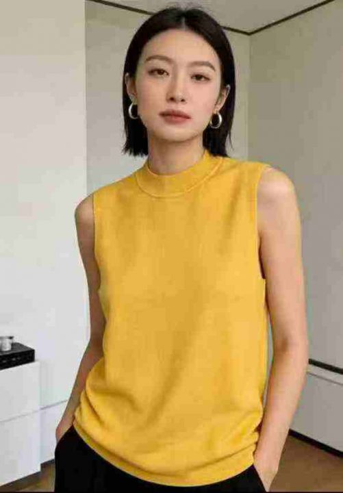 春秋夏新款净版简约宽松百搭包芯纱无袖针织毛衣马甲,...