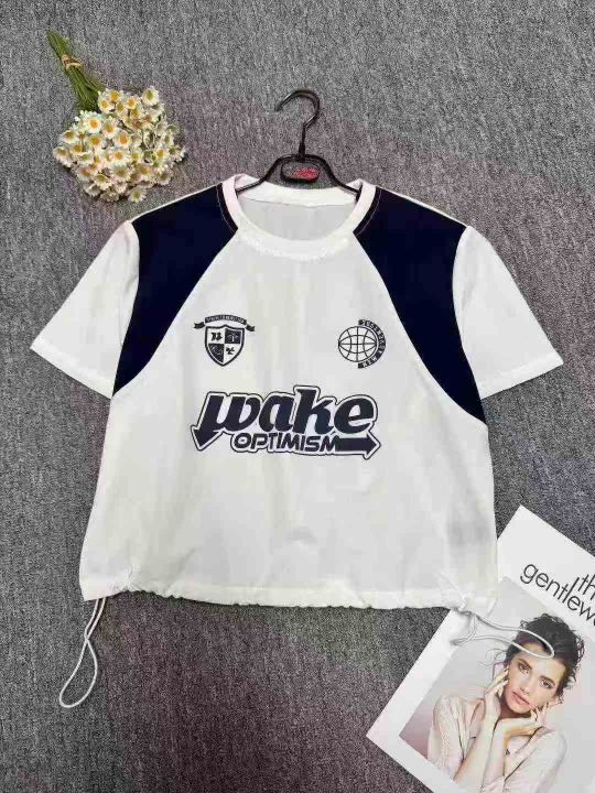 女装T恤潮流印花拼接短袖上衣,领口有包边,数量110件...