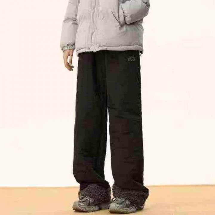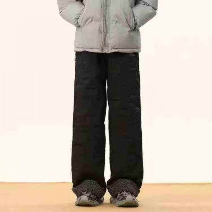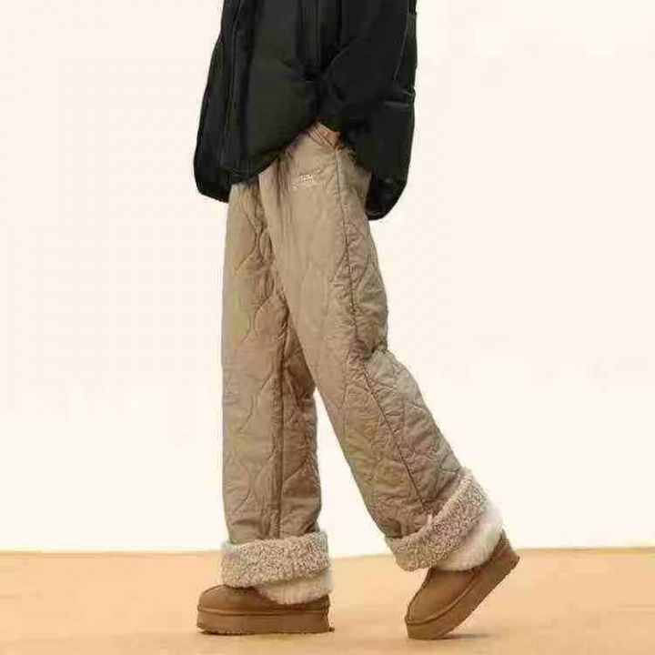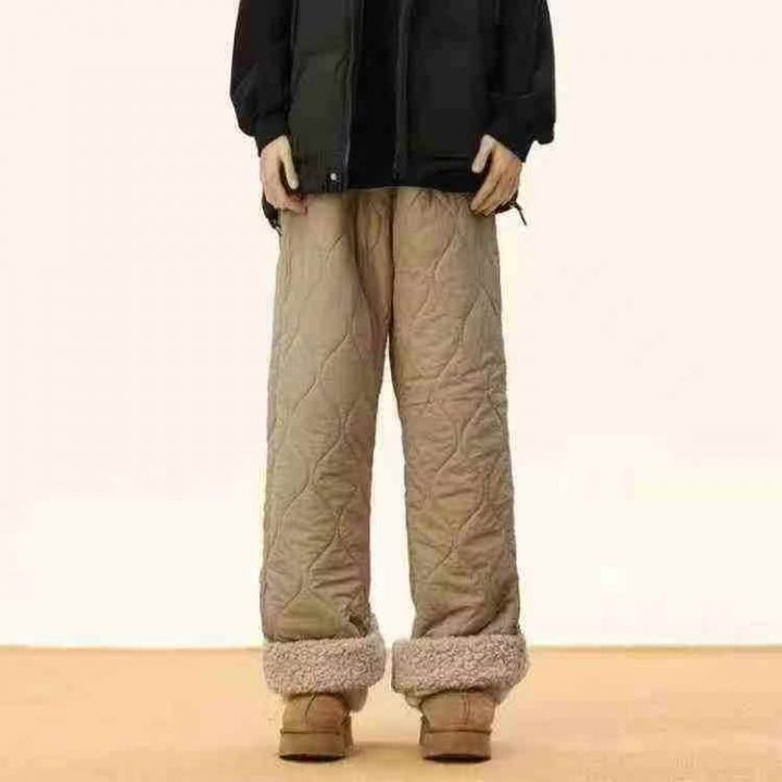 防寒休闲羊羔保暖裤男女冬季潮宽松葫芦纹防水直筒裤加...