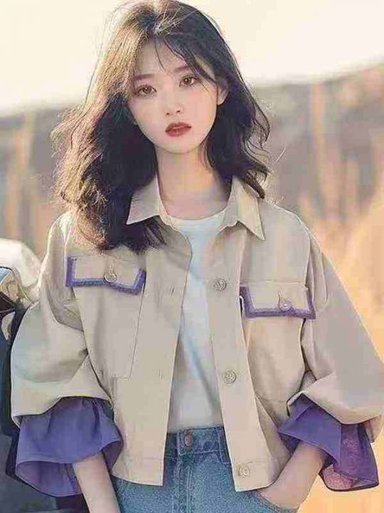 小香风卡其色拼接工装慵懒风开衫夹克短款外套上衣,单...