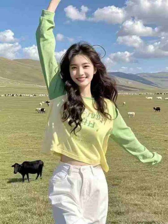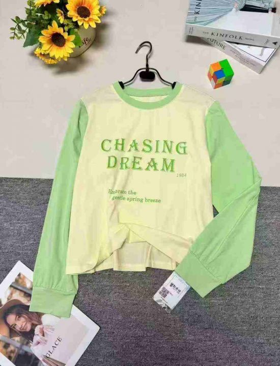 春秋设计独特拼色纯棉长袖T恤女,单款单色,品质好,有独立包装带吊牌,均码,数量300件左右,全清6.8元秒。