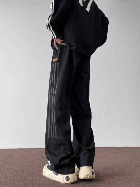全清7.5不分货美式三条杠休闲裤男秋潮牌高街百搭运动卫裤复古直筒宽松裤子...
