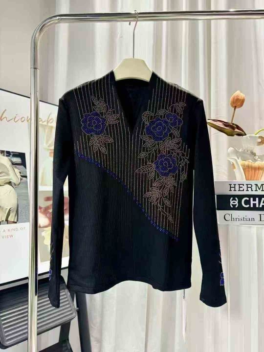 110件高端爆闪贵妇V领烫钻潮流新款时尚修身显瘦洋气加...