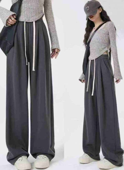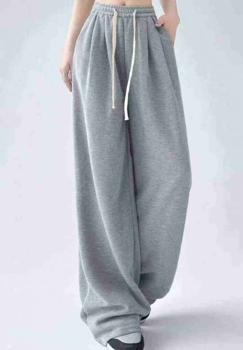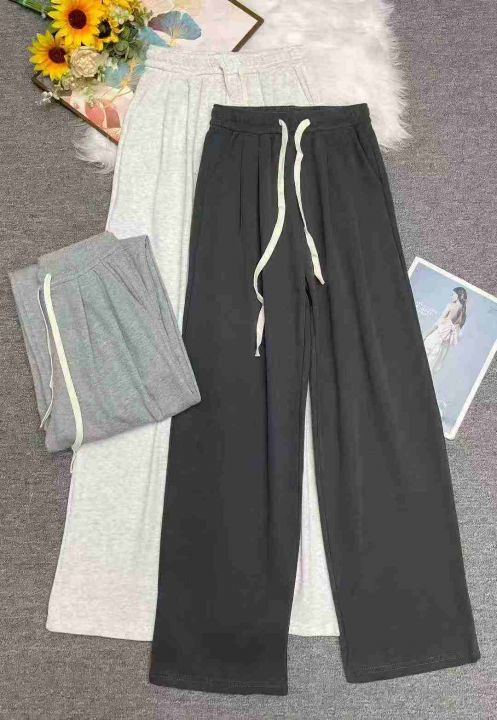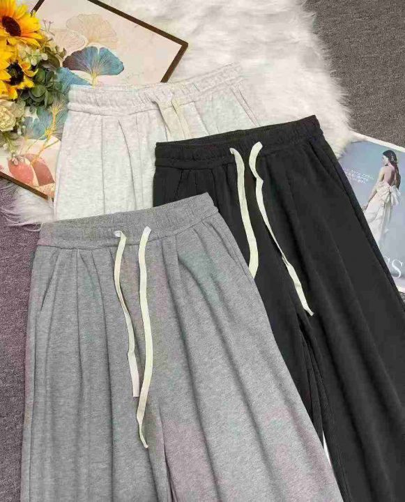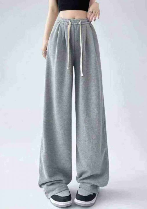 春秋新款宽松百搭网红直筒阔腿棉质松紧腰休闲卫裤,独...