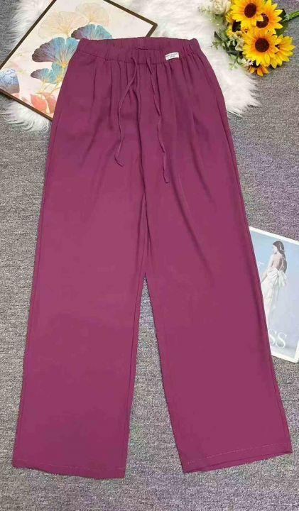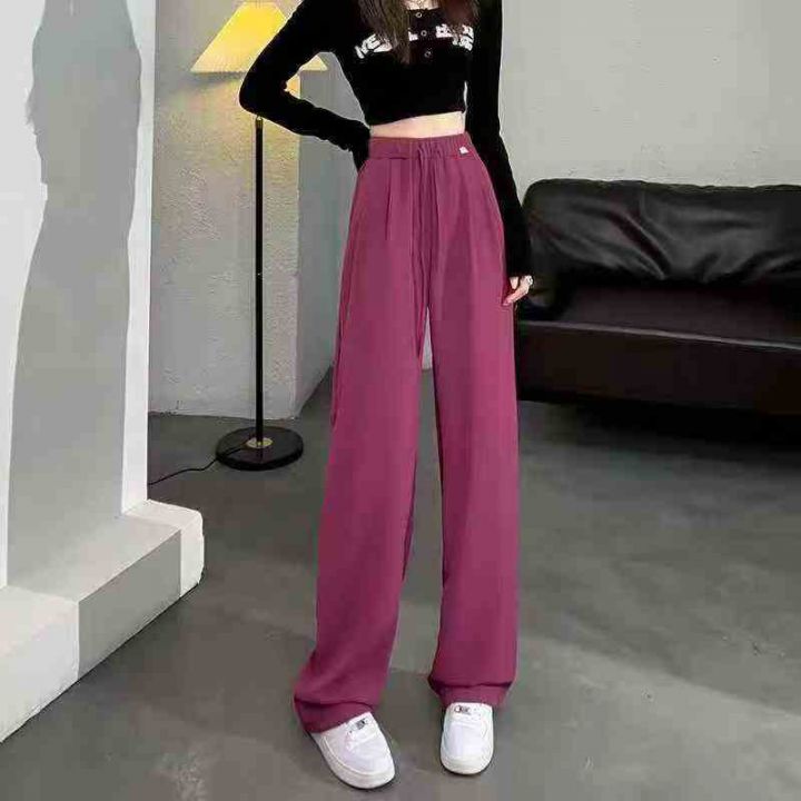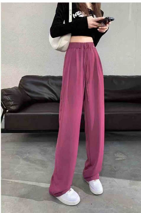 春夏新款高品质冰丝顺滑松紧腰休闲直筒阔腿裤,面料西...