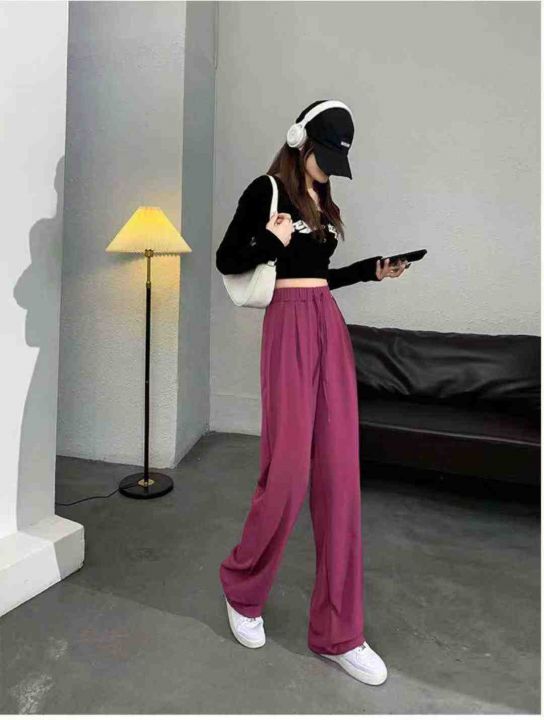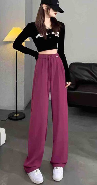 春夏新款高品质冰丝顺滑松紧腰休闲直筒阔腿裤,面料西...